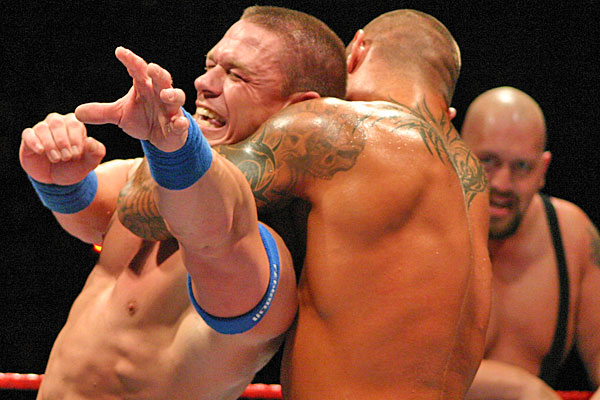 Randy Orton interfered from the outside, pummeling at Cena with a flurry of kicks while Big Show distracted the referee, but Triple H was having none of it and chased Orton with a chair from ringside.